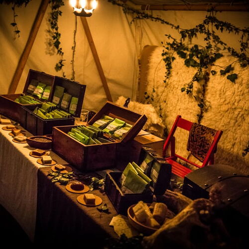 🍯 Geniesst süssen Met, 🎶 lauschet edlen Klängen, 🎲 versucht euch an spannenden Spielen und 🍗 labt euch an feinen Speisen.
