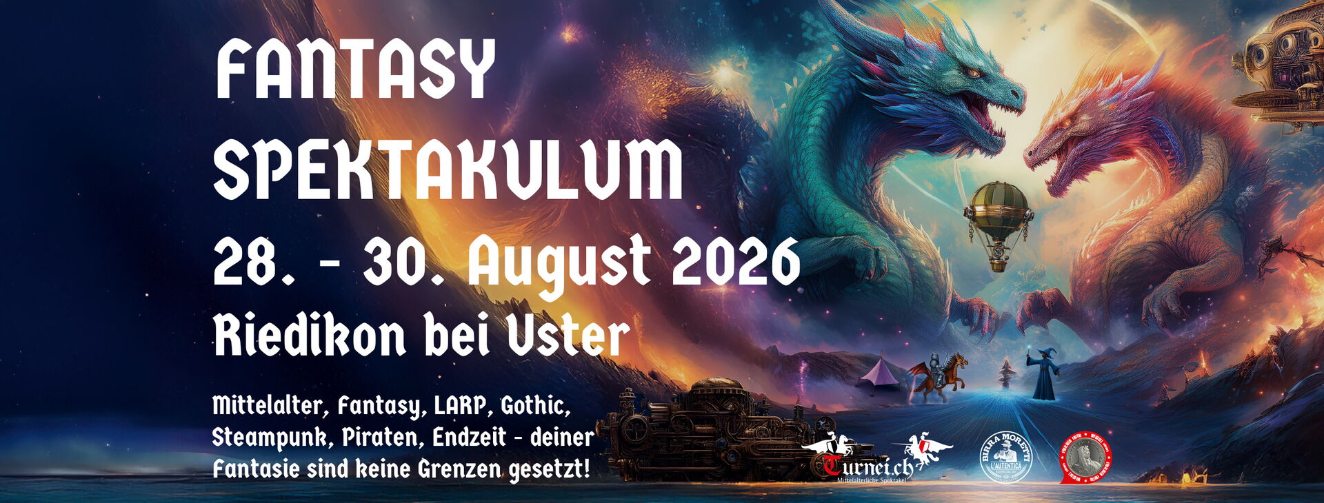 Vom 28. bis 30. August öffnet in Riedikon zu Uster die Pforten zu einem epischen Fantasy Spektakulum, das Euch in ein Reich der Fantasie entführt! Ein Fest, das von der Steinzeit bis zu den Weiten des Weltraums reicht – von Mittelalter bis zu Star Wars, Steampunk, Gothic, Piraten, Endzeit und Fantasy LARP! Taucht ein in diese magische Zeitreise, wo sich Welten und Epochen vereinen, um Euch zu verzaubern!