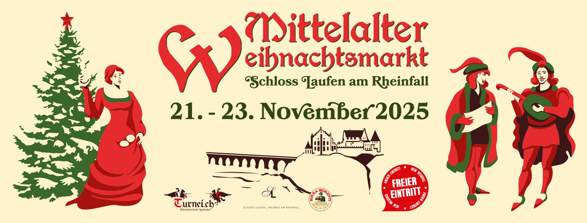 Zum Auftakt der Adventszeit öffnet Schloss Laufen am Rheinfall seine ehrwürdigen Pforten für das vierte Spektakel des mittelalterlichen Weihnachtsmarktes! Einzig in seiner Art, vereinet er Narren, Gaukler, ehrbare Händler und das Volk – ob in prächtiger Gewandung oder in bunten Fetzen des Neuweltlichen.