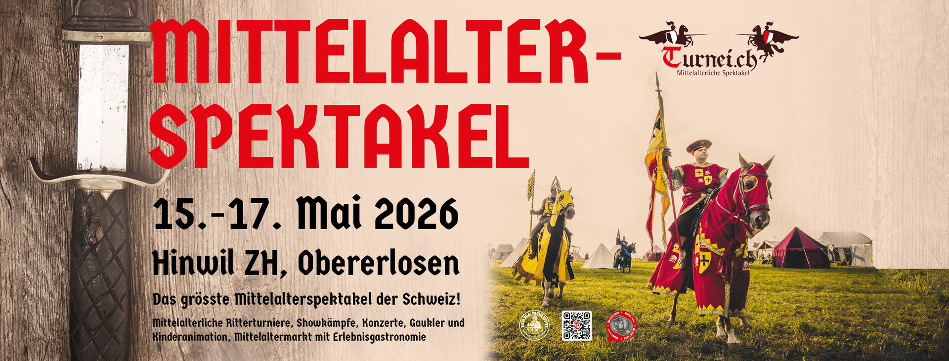 Vom 30. Tage des Maien bis zum 1. Tage des Junis anno Domini 2025 wird das ehrwürdige Obererlosen zu Hinwil zum Schauplatz des grössten Mittelalterspektakels in der Eidgenossenschaft! Wohl 1000 Mitwirkende ziehen auf, um Euch ein gar prächtiges Schauspiel zu bereiten und Euch ins Herzen des Mittelalters zu entführen.